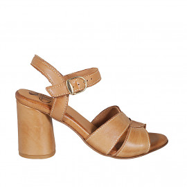 Sandalia para mujer en piel trensada negra tacon 3 - Tallas disponibles:  35, 44