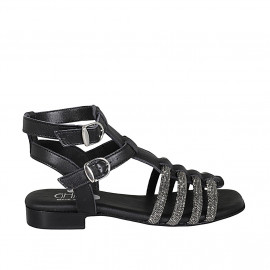 Sandale pour femmes en cuir noir avec chaîne talon compensé 5 - Pointures disponibles:  42, 43