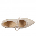 Spitze Damenballerina mit Schnürsenkeln aus elfenbeinfarbenem, geflochtenem Leder und Rand aus beigem Wildleder mit Absatz 2