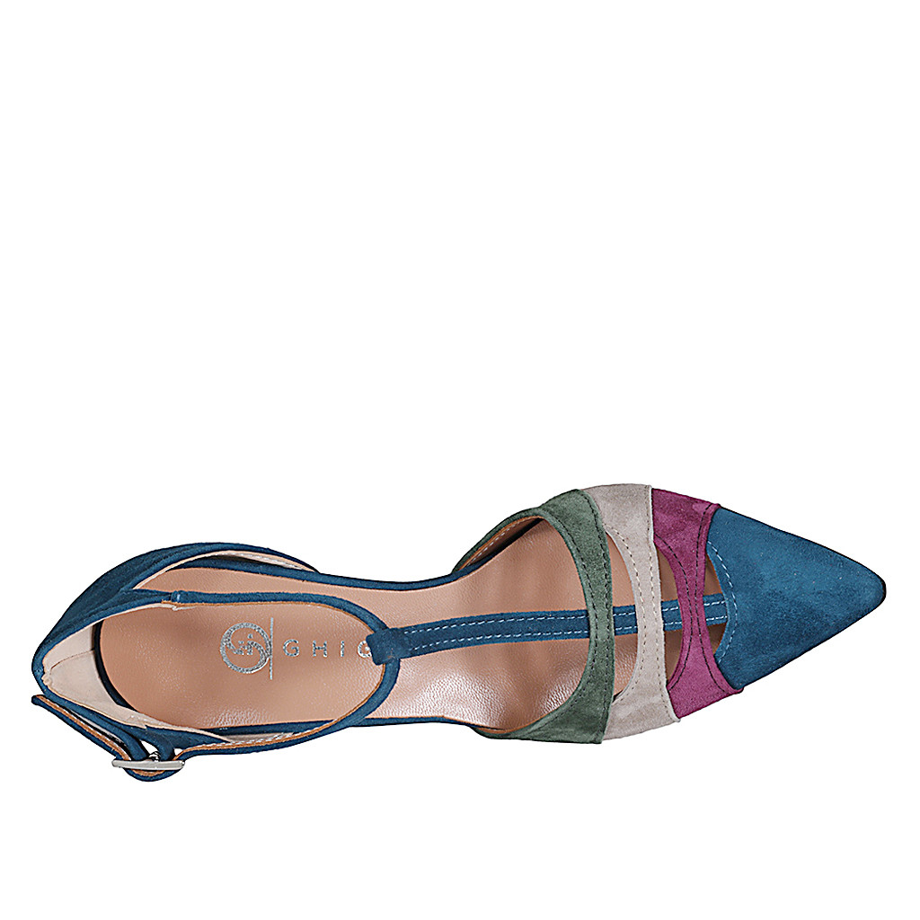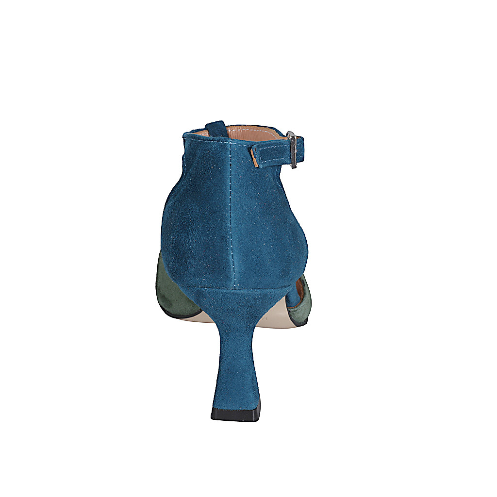 Spitzer Slingback für Damen aus cognacbraunem Wildleder mit goldenem Accessoire Absatz 6