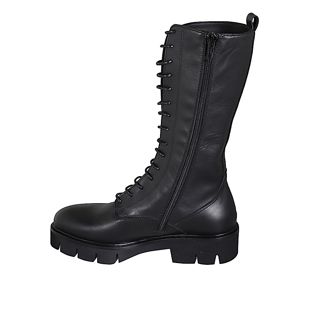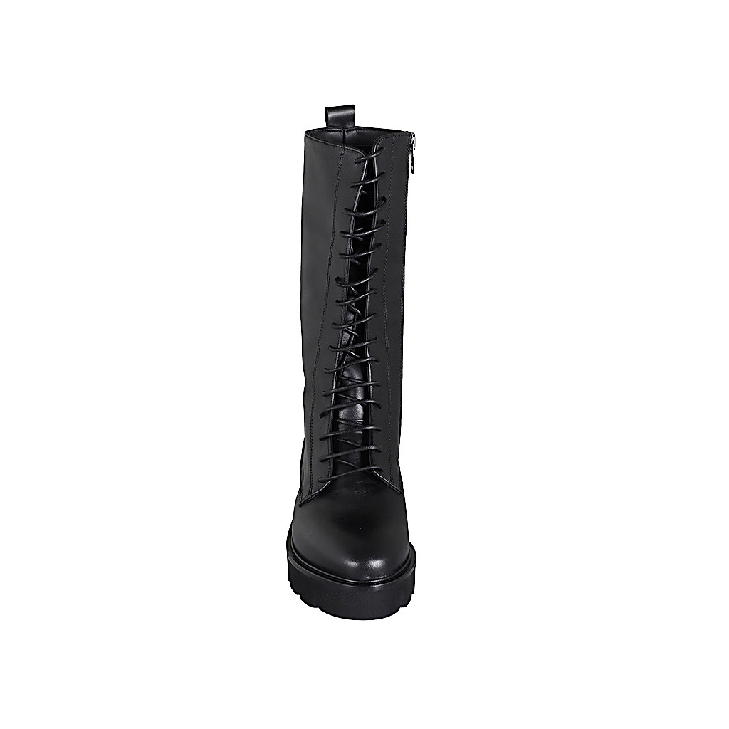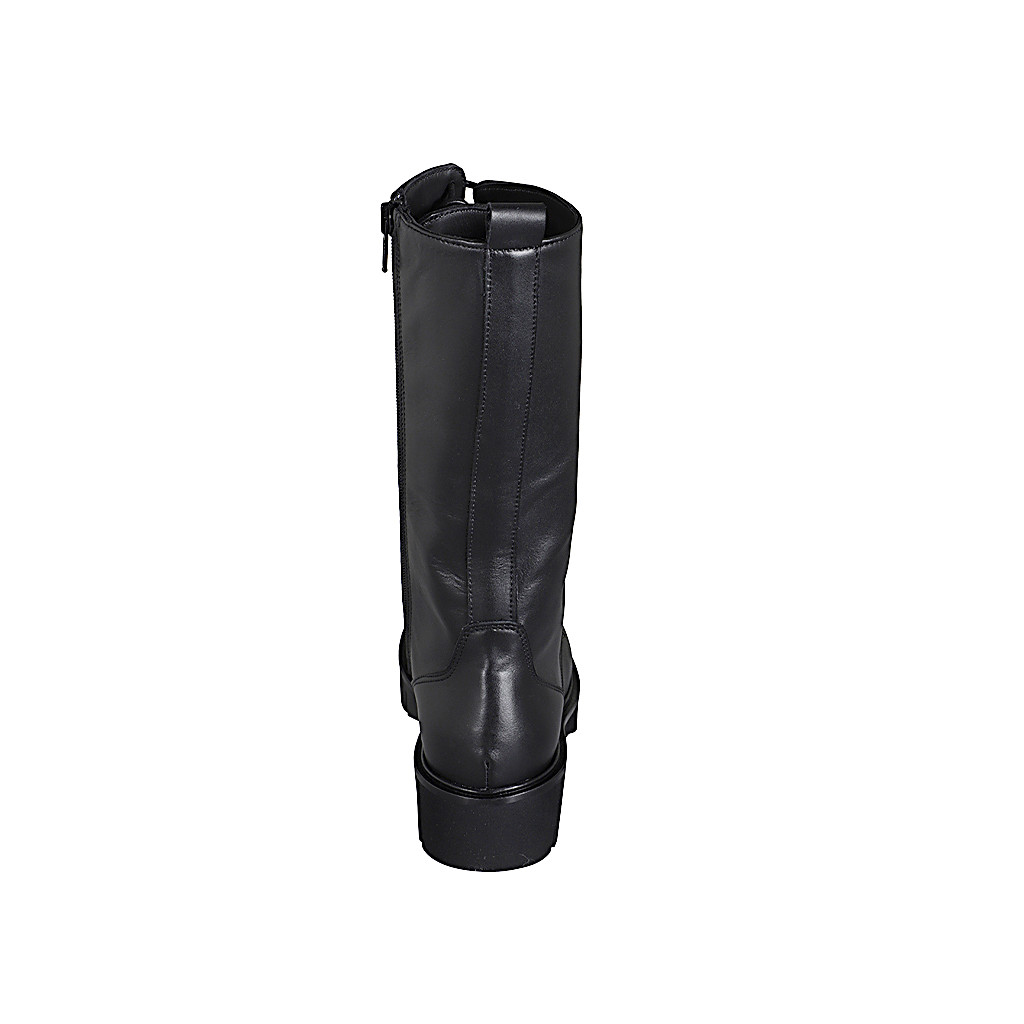 Damenschuh mit Knopf aus grauem elastischem Samt und schwarzem Lackleder Keilabsatz 4