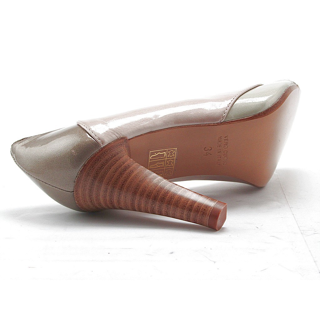 Offener Damenschuh aus beigem, hellgrünem, rosa- und taupefarbenem perligem Lackleder Absatz 9 - Verfügbare Größen:  42