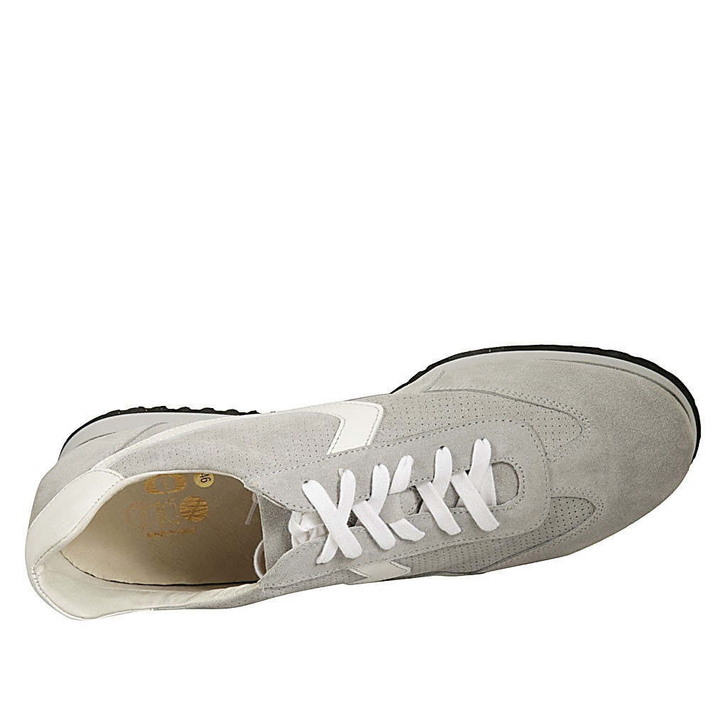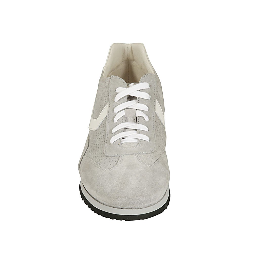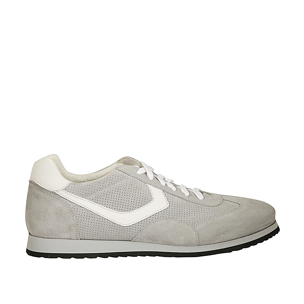 Sportlicher Herrenschnürschuh aus grauem Wildleder und perforiertem Wildleder und wei?em Leder - Verfügbare Größen:  46