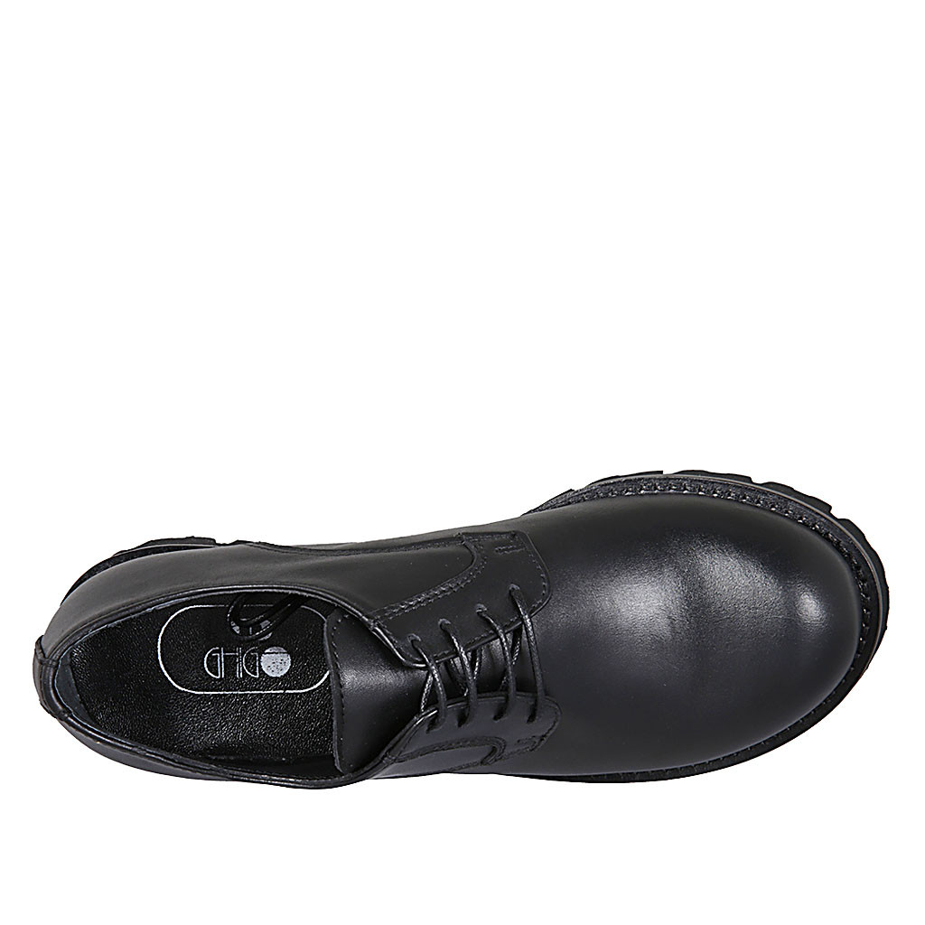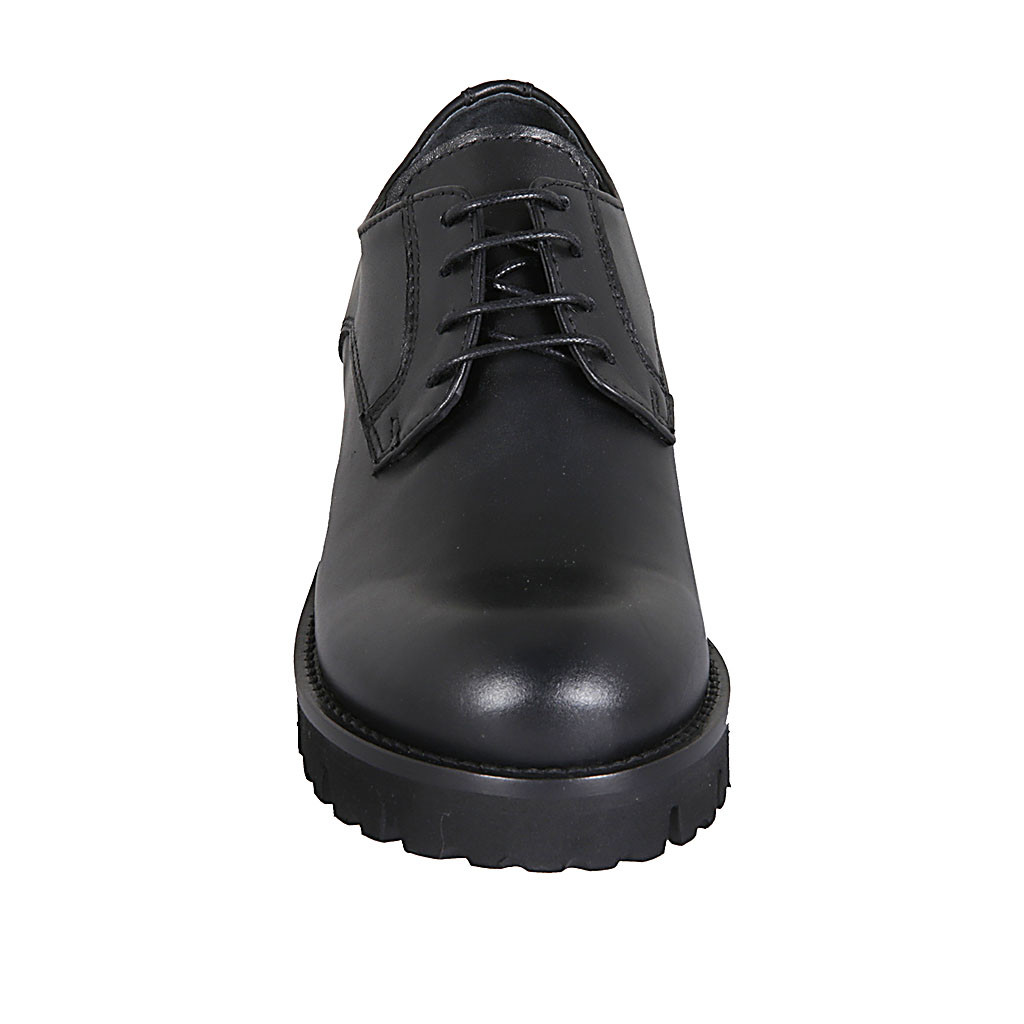 Derbyschuh für Damen mit Schnürsenkeln aus schwarzem Leder Absatz 3