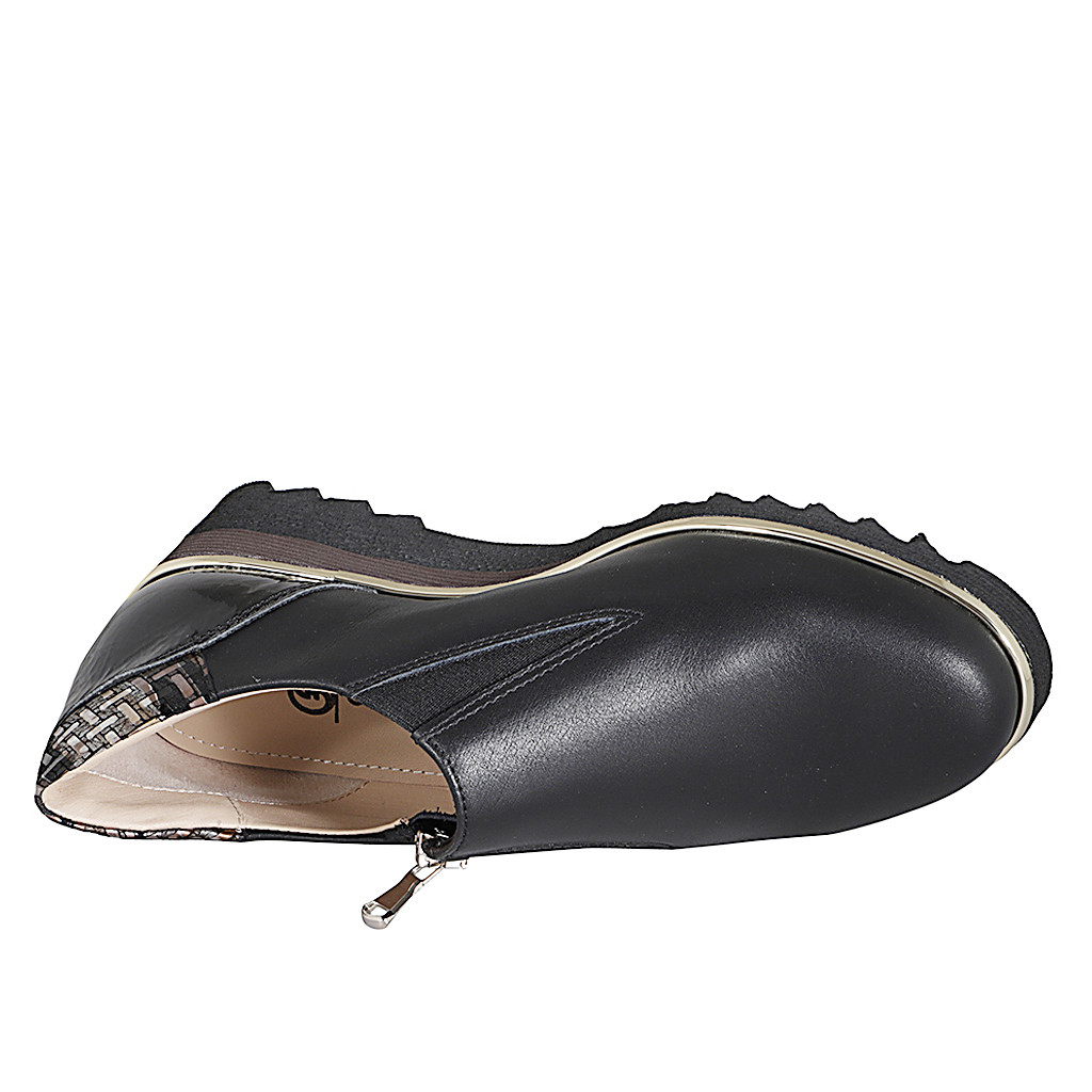 Sneaker mit abnehmbarer Innensohle aus weißem Leder und braunem Wildleder mit Fellfutter Keilabsatz 2