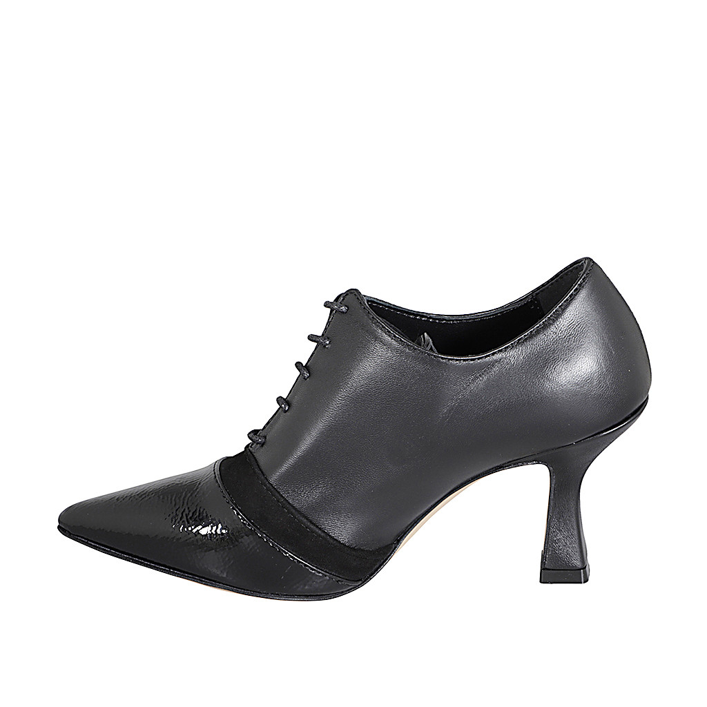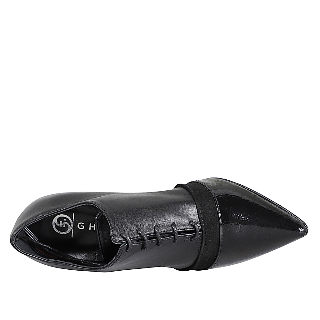 Damenoxfordschuh mit Schnürsenkeln und Flügelmuster aus schwarzem und bordeauxfarbenem gebürstetem Leder Absatz 3
