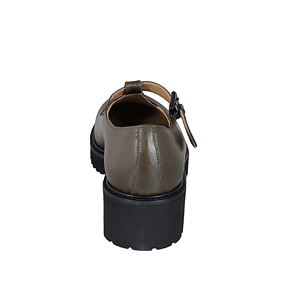 Damen-Mary-Jane-Schuh mit T-Riemen aus grünem Leder und Absatz 4