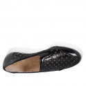 Hochgeschlossener Damenschuh mit abnehmbarer Innensohle aus weichem, perforiertem, schwarzem Lackleder mit Keilabsatz 3