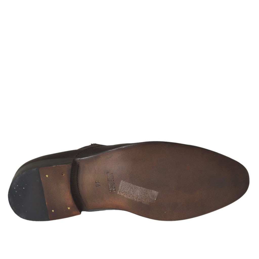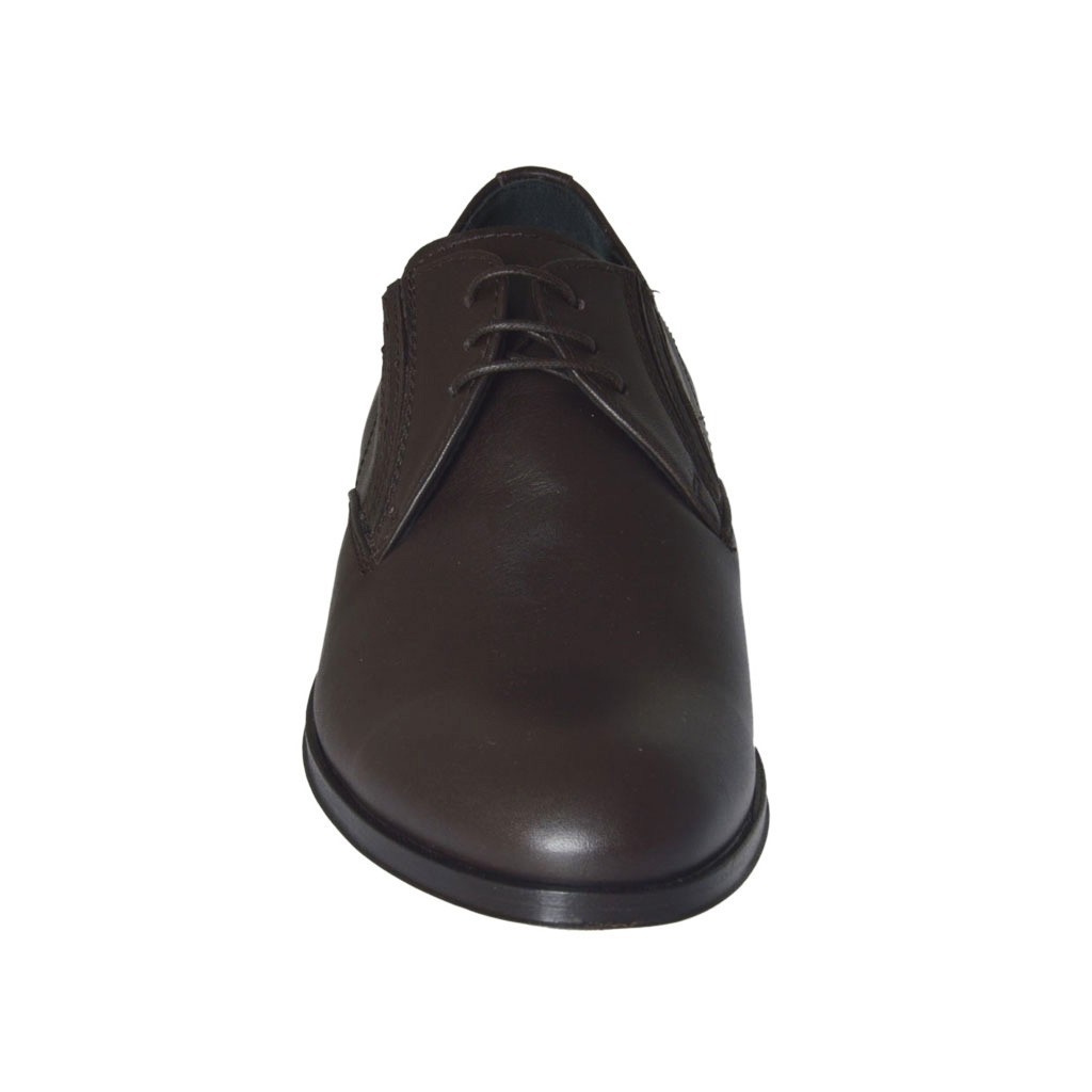 Eleganter Herrenschnürschuh im Derbystil mit Gummiband aus glattem braunem Leder - Verfügbare Größen:  36, 37, 38, 46, 47, 49, 50