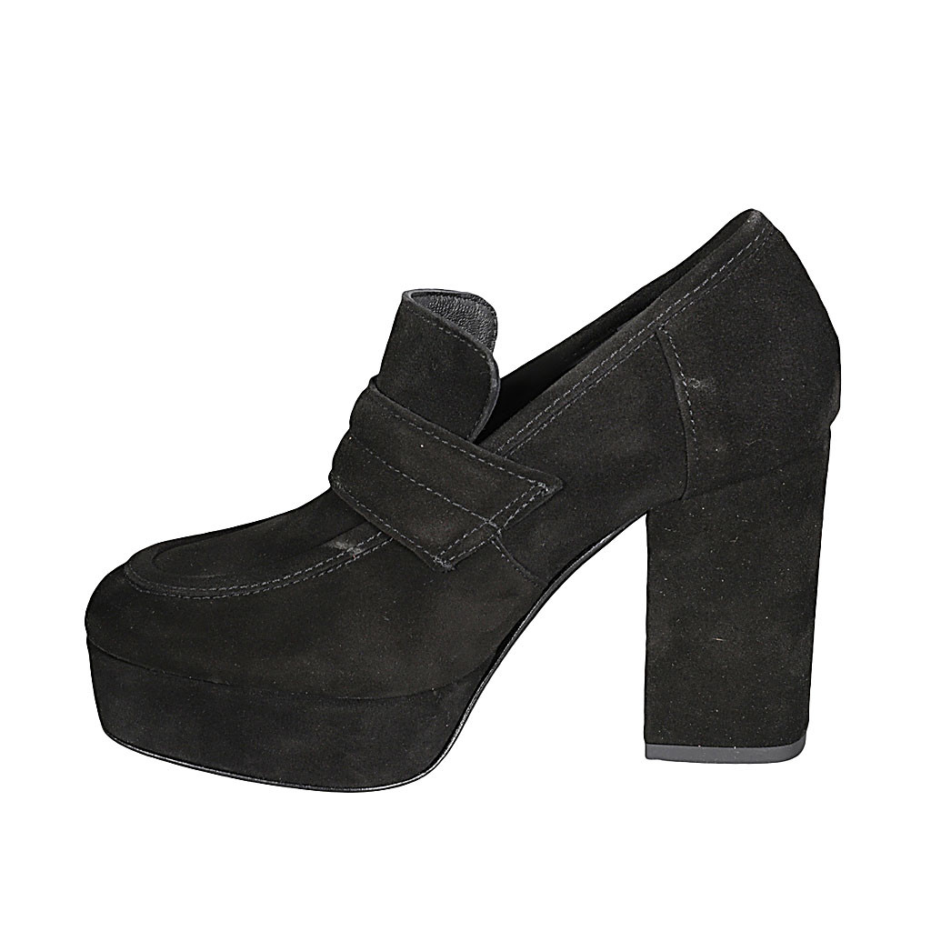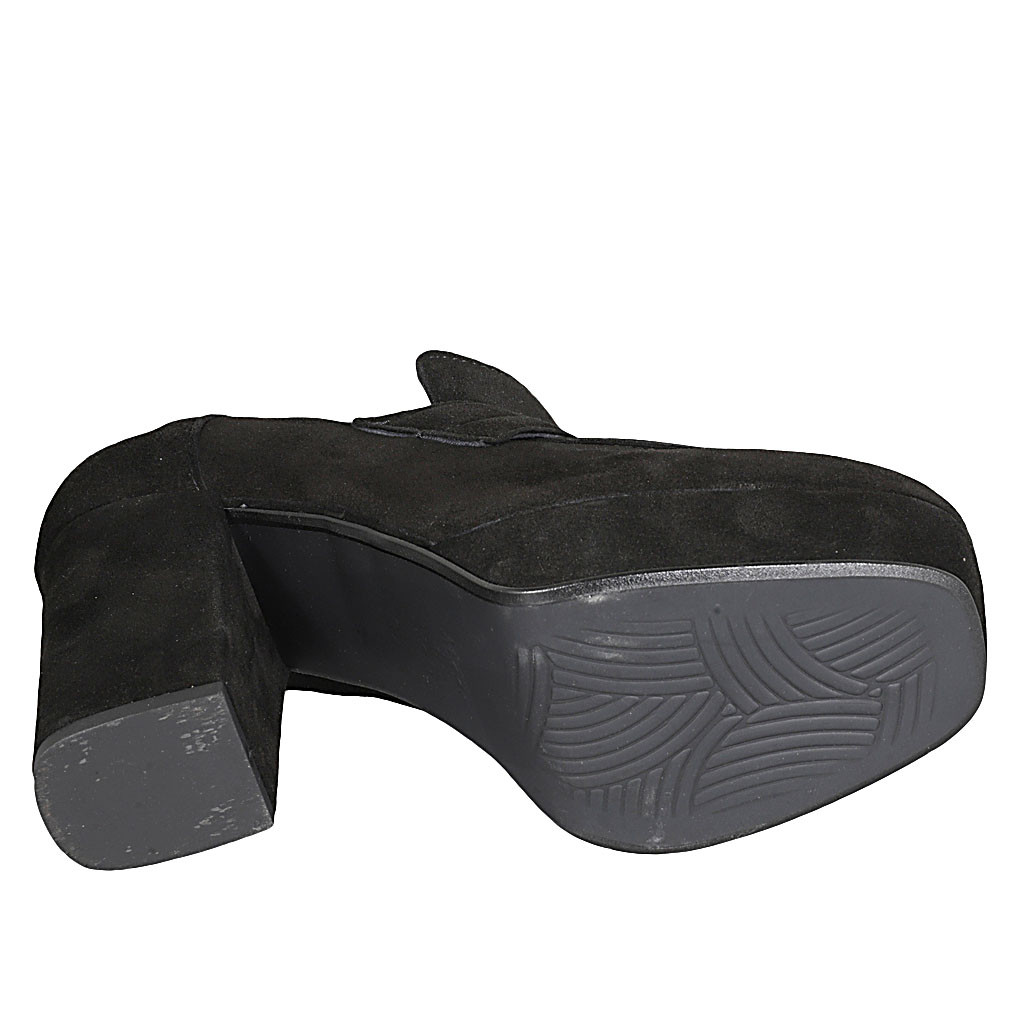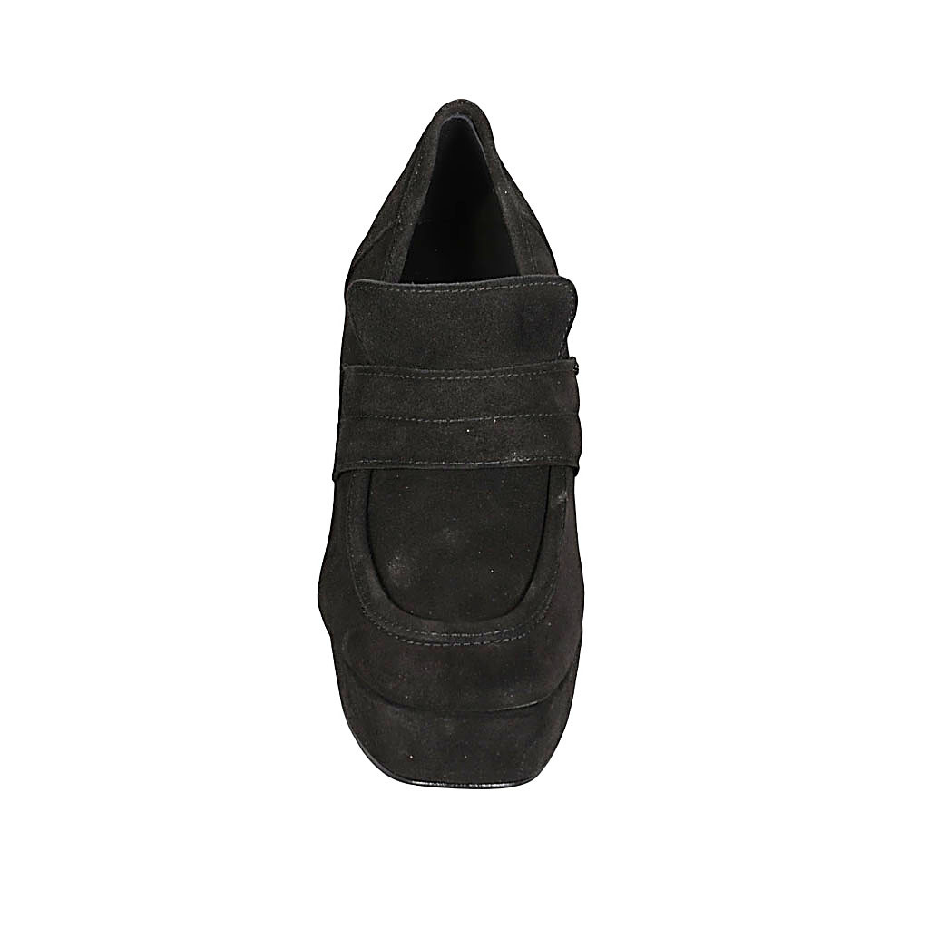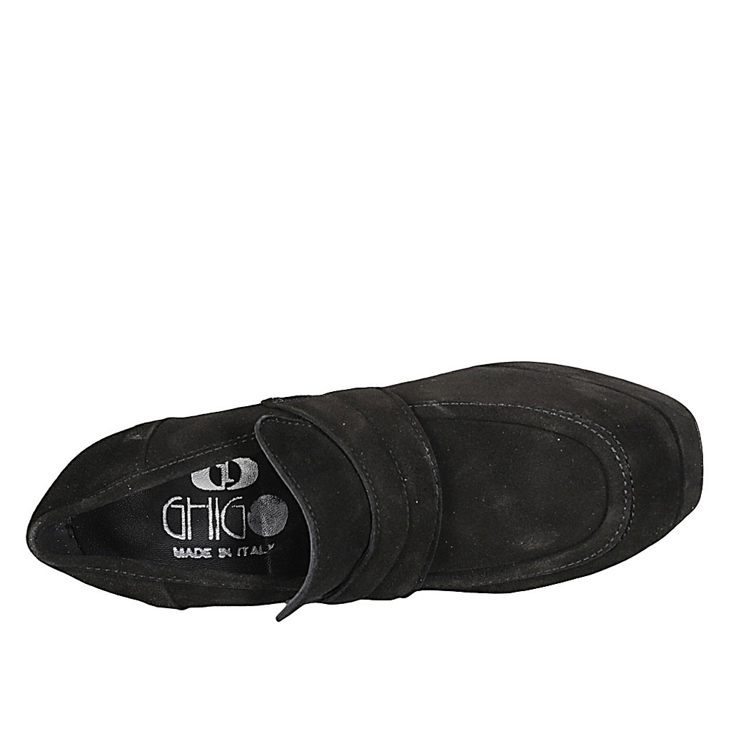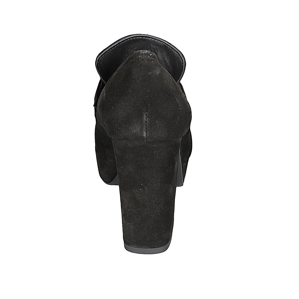 Damen Schnürstiefelette mit innerem Reißverschluss und Doppelschnallen aus schwarzem Leder Absatz 5