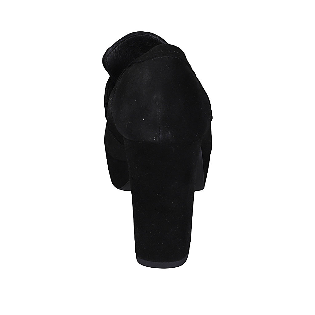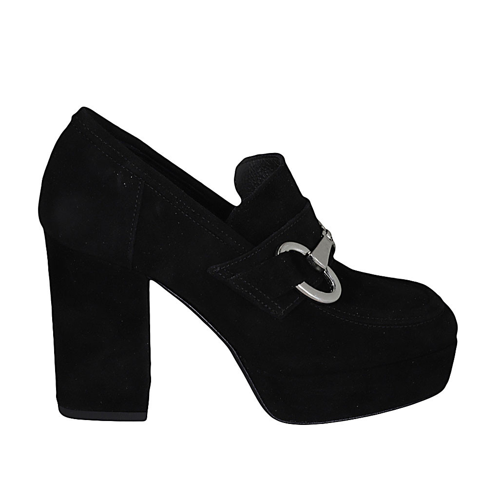 Damenmokassin mit Plateau und Accessoire aus schwarzem Wildleder Absatz 10