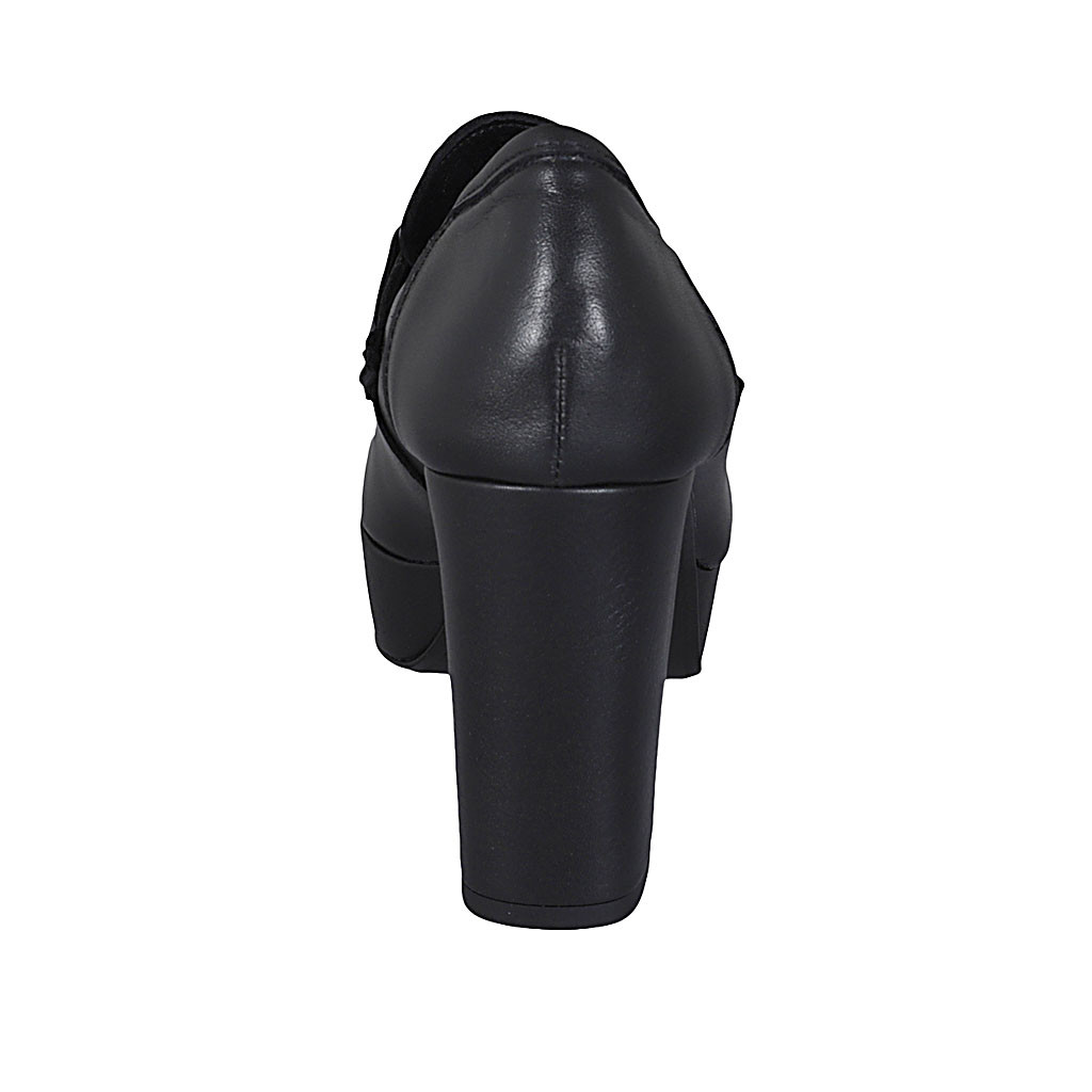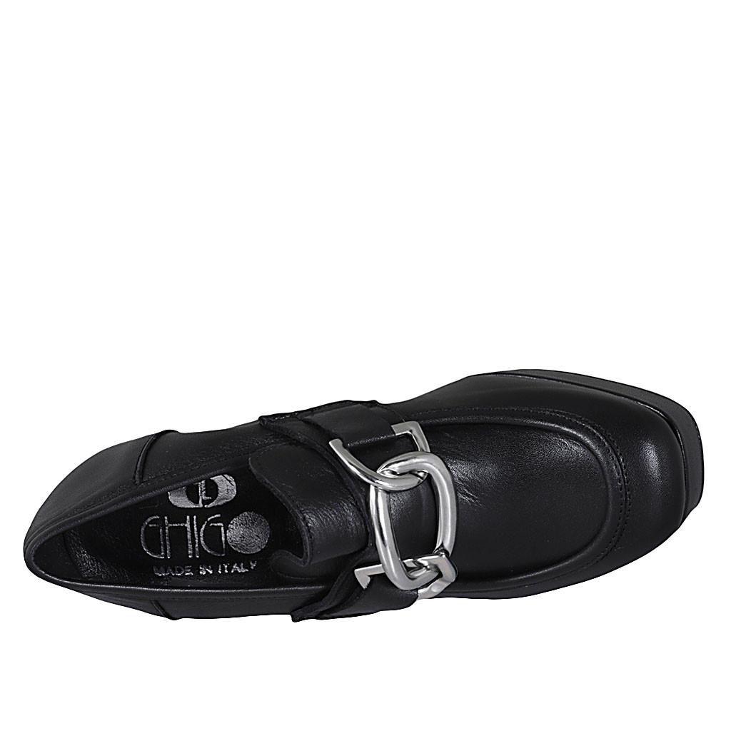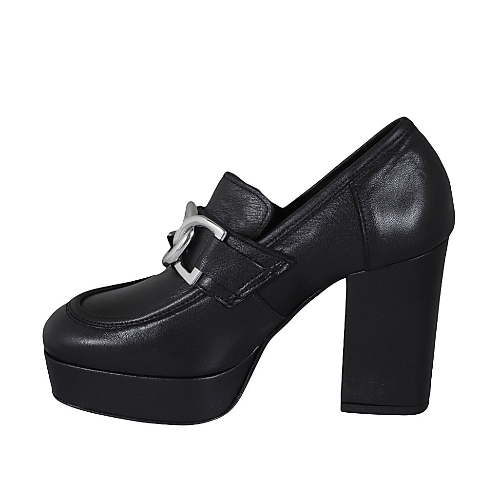 Damenmokassin aus schwarzem Leder mit Kette und Plateau Absatz 10