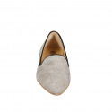 Offener spitzer Damenschuh mit doppelten Riemchen aus weißem und laminiertem platinfarbenem Leder, Absatz 2