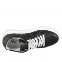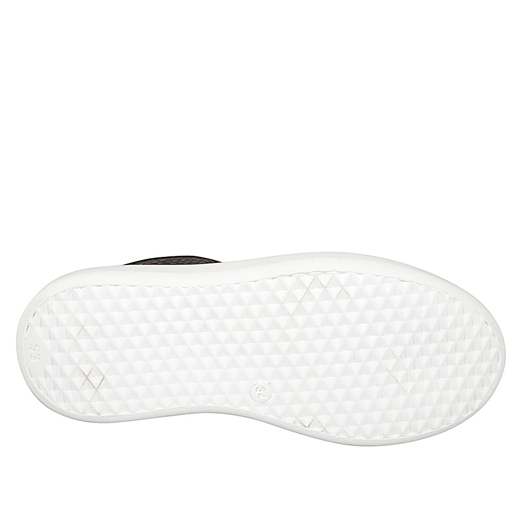 Damensandale mit einem Riemen aus taupefarbenem Wildleder und Seilstoff mit buntem Blumendruck mit Absatz 7