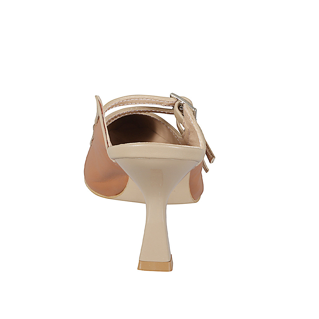 Offene Damenpantolette mit Innensohle im Memory-Schaum aus beigem Wildleder und platinfarbenem...