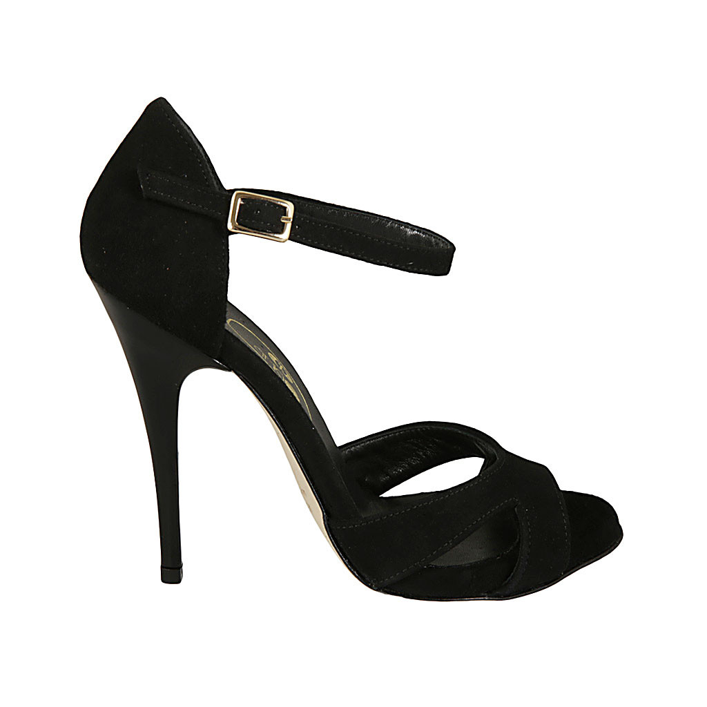 Offener Damenschuh mit Riem aus schwarzem Wildleder Absatz 11
