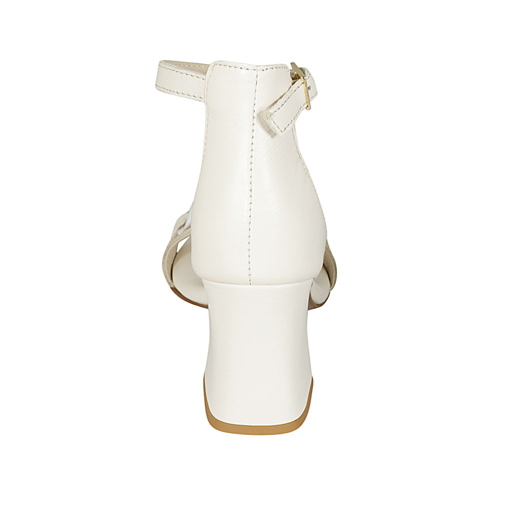 Offener Damenschuh mit Knöchelriem aus weißem Leder Absatz 5