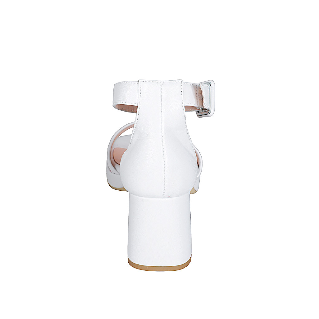 Offener Damenschuh mit Riem und Plateau aus weißem Leder und buntem Stoff mit Glitter Absatz 7