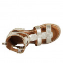 Offener Damenschuh aus laminiertem platinfarbenem Leder mit Reißverschluss und Schnallen mit Absatz aus Profilsohle 4