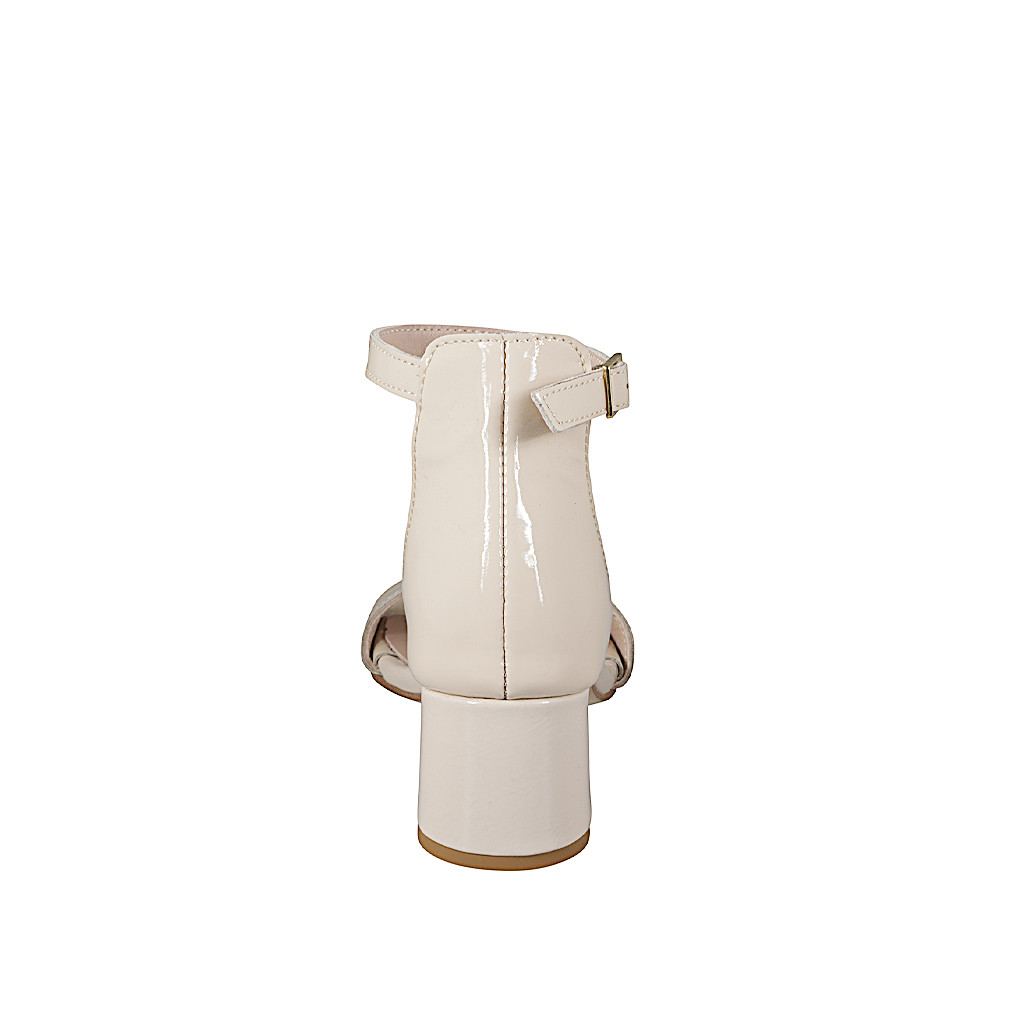 Offene Damenschuhe mit Knöchelriemen und vorderem Riem aus nudefarbenem Lackleder Absatz 5