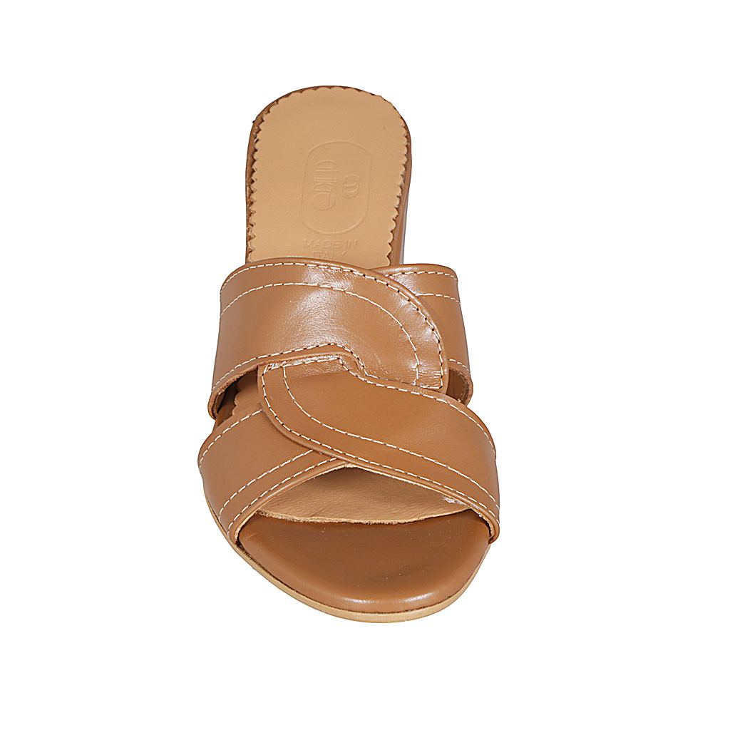 Damenpantolette aus cognacbraunem Leder Absatz 5