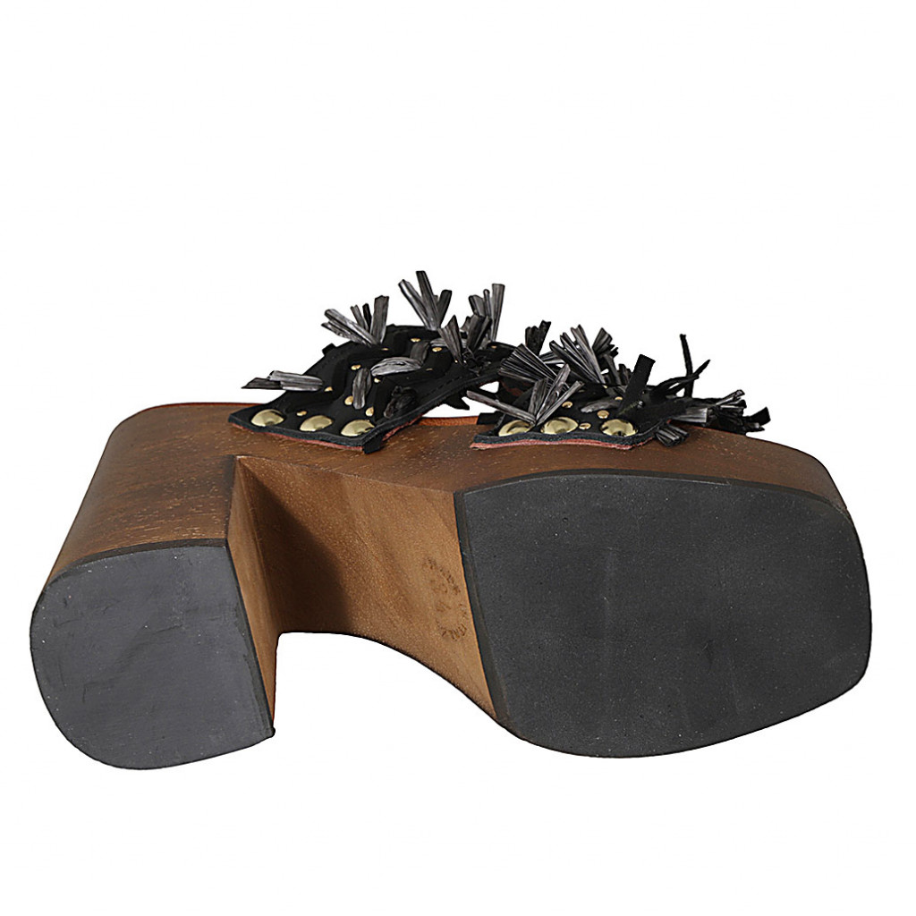 Offener Damenschuh mit Knöchelriem und Plateau aus schwarzem Leder Absatz 11