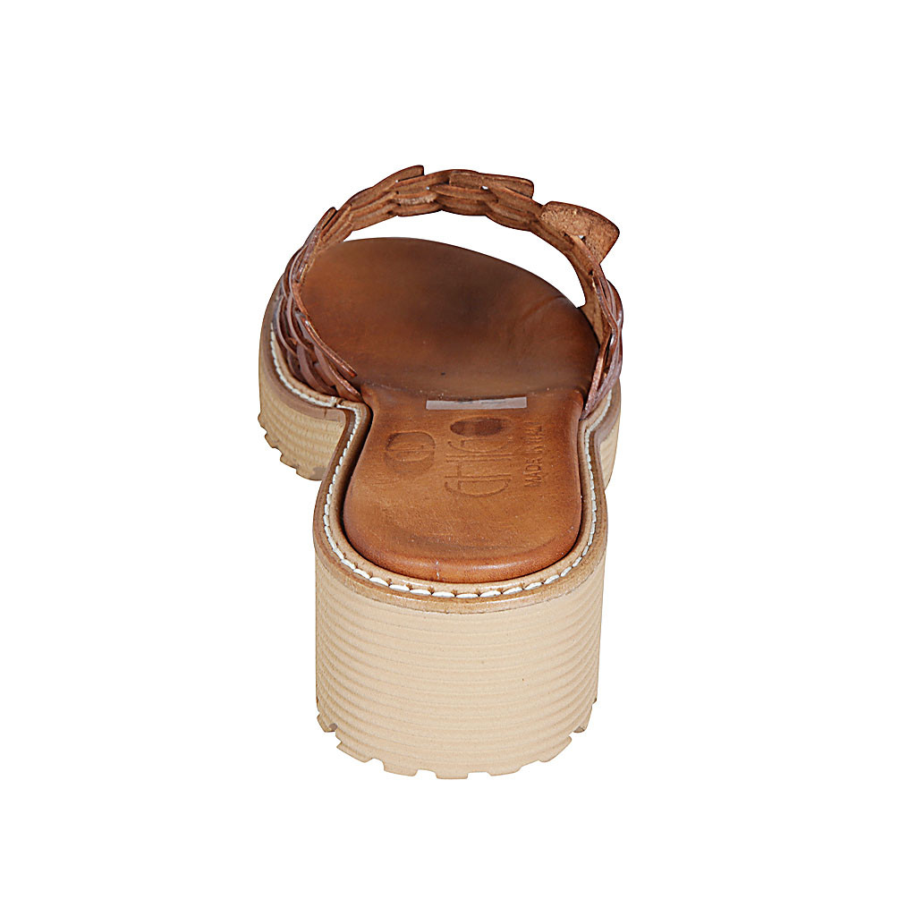 Damenpantolette aus cognacbraunem geflochtenem Leder Absatz 4
