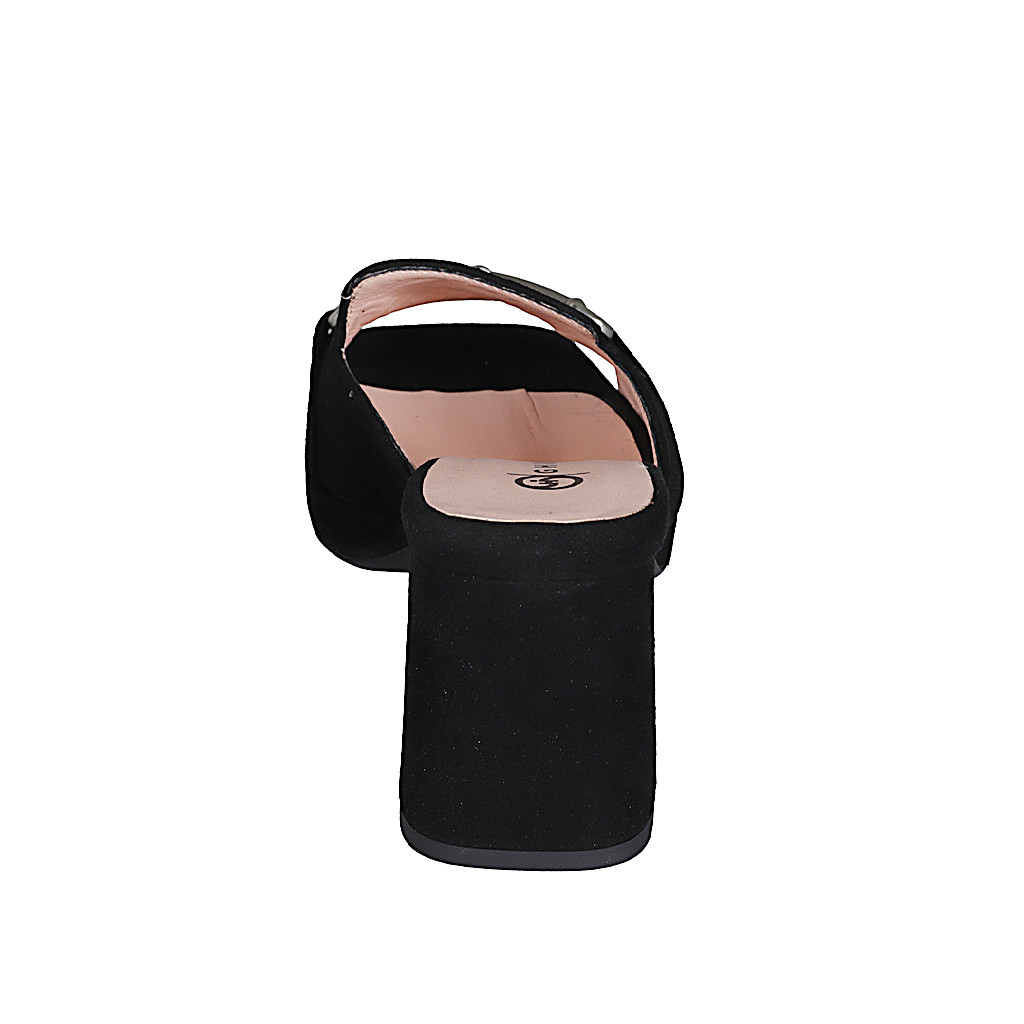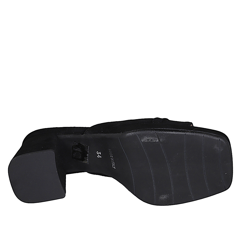 Damenpantoletten aus schwarzem Wildleder mit Accessoire, Plateau und Absatz 7