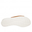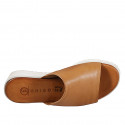 Damenpantolette mit Gummiband aus cognacbraunem Leder mit Keilabsatz 4
