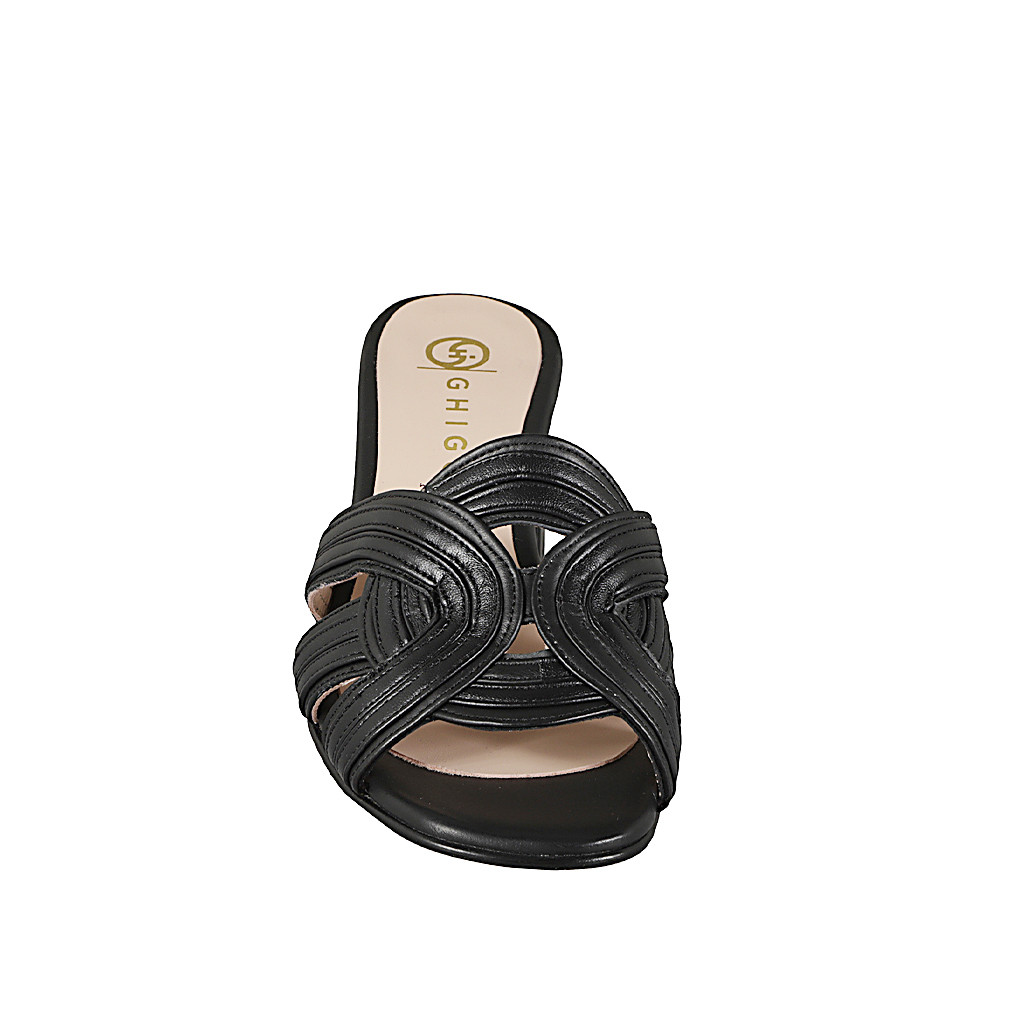 Damenpantoletten mit gekreuztem Riemchen-Design aus schwarzem Leder, Absatz 5