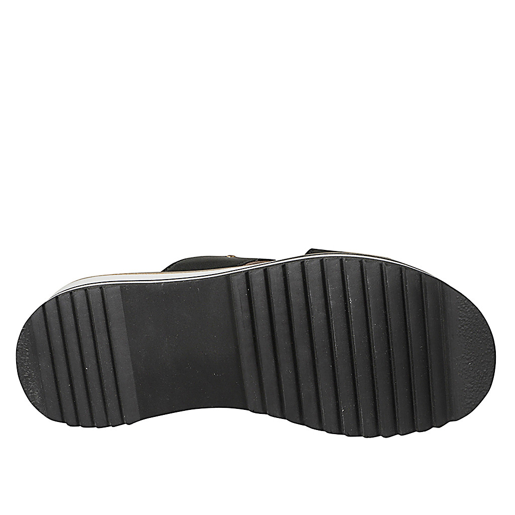 Offene Damenpantoletten aus 2 Bändern mit Gummiband und Nieten aus cognacbraun Leder mit Keilabsatz 5