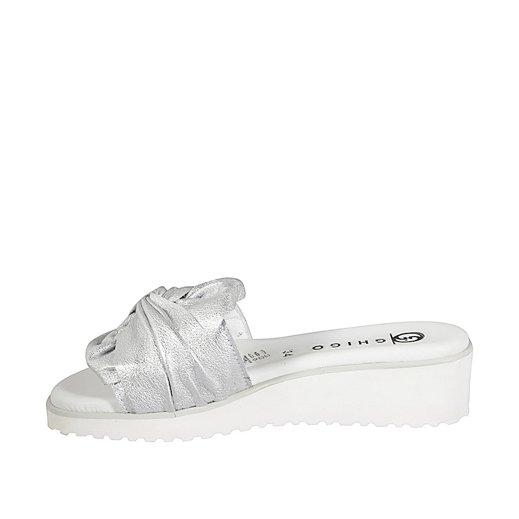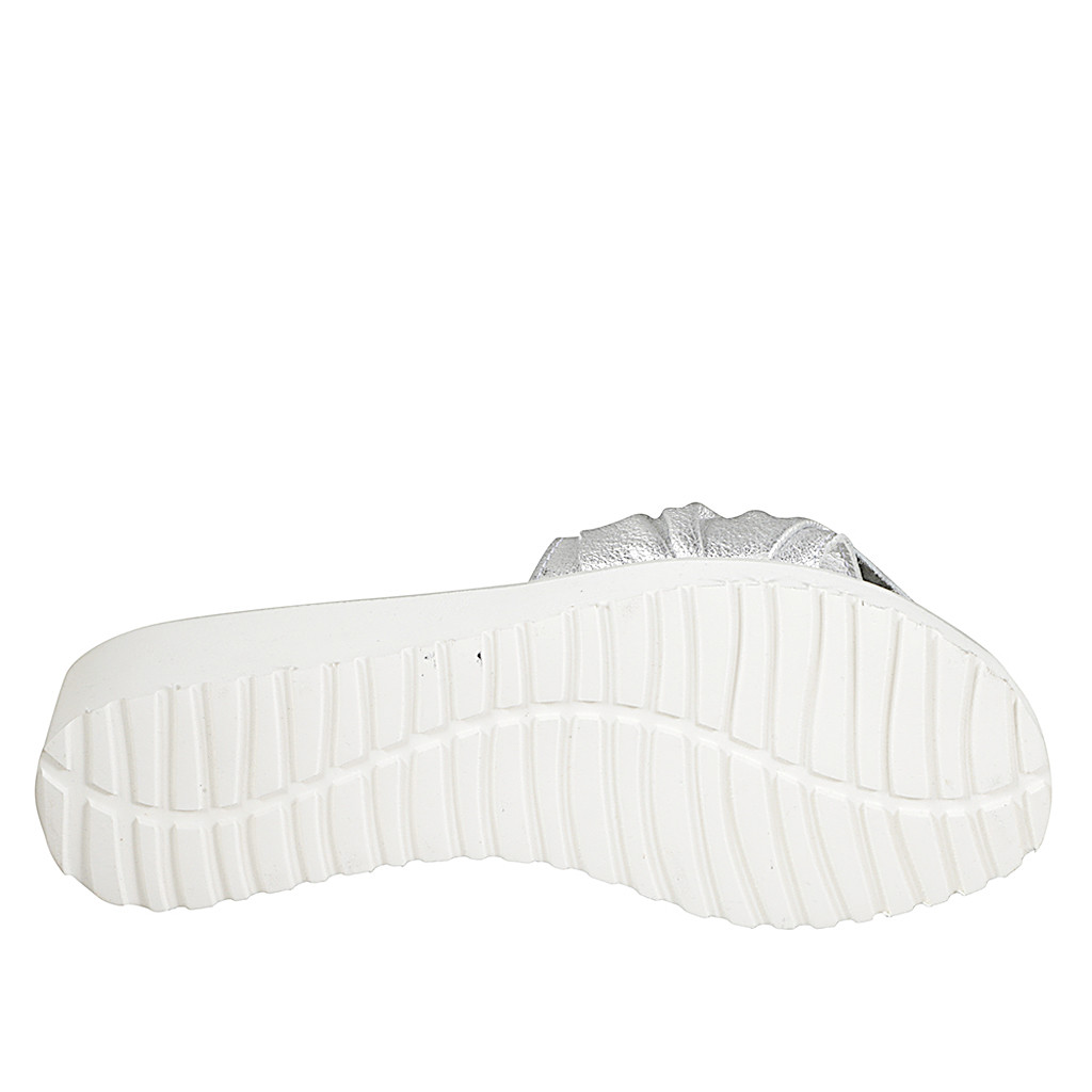 Geschlossene Damenpantoletten mit goldenem Accessoire aus schwarzem Leder und Absatz 1