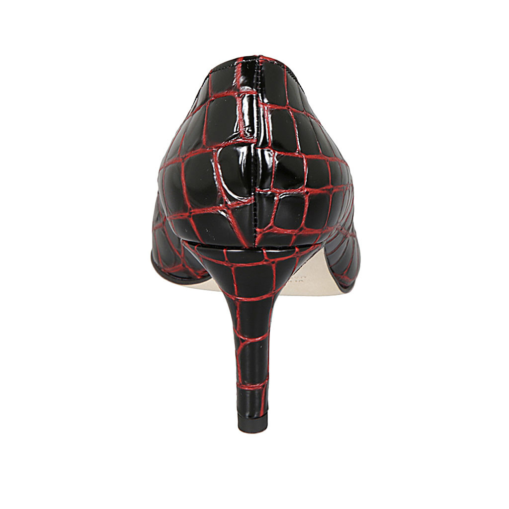 Damenpump aus schwarzem und rotem bedrucktem gebürstetem Leder Absatz 7
