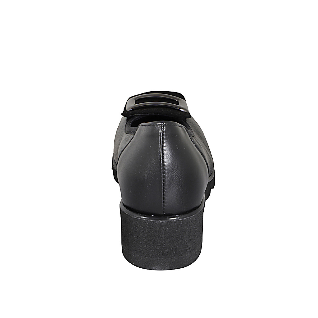 Damenderbyschuh mit Schnürsenkeln aus schwarzem bedrucktem Leder Absatz 3