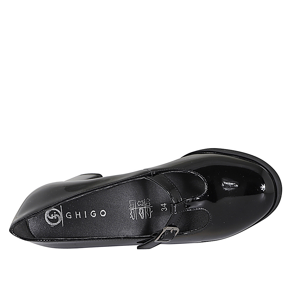 Mary Jane für Damen mit Riem und abnehmbarer Innensohle aus schwarzem Lackleder Absatz 5
