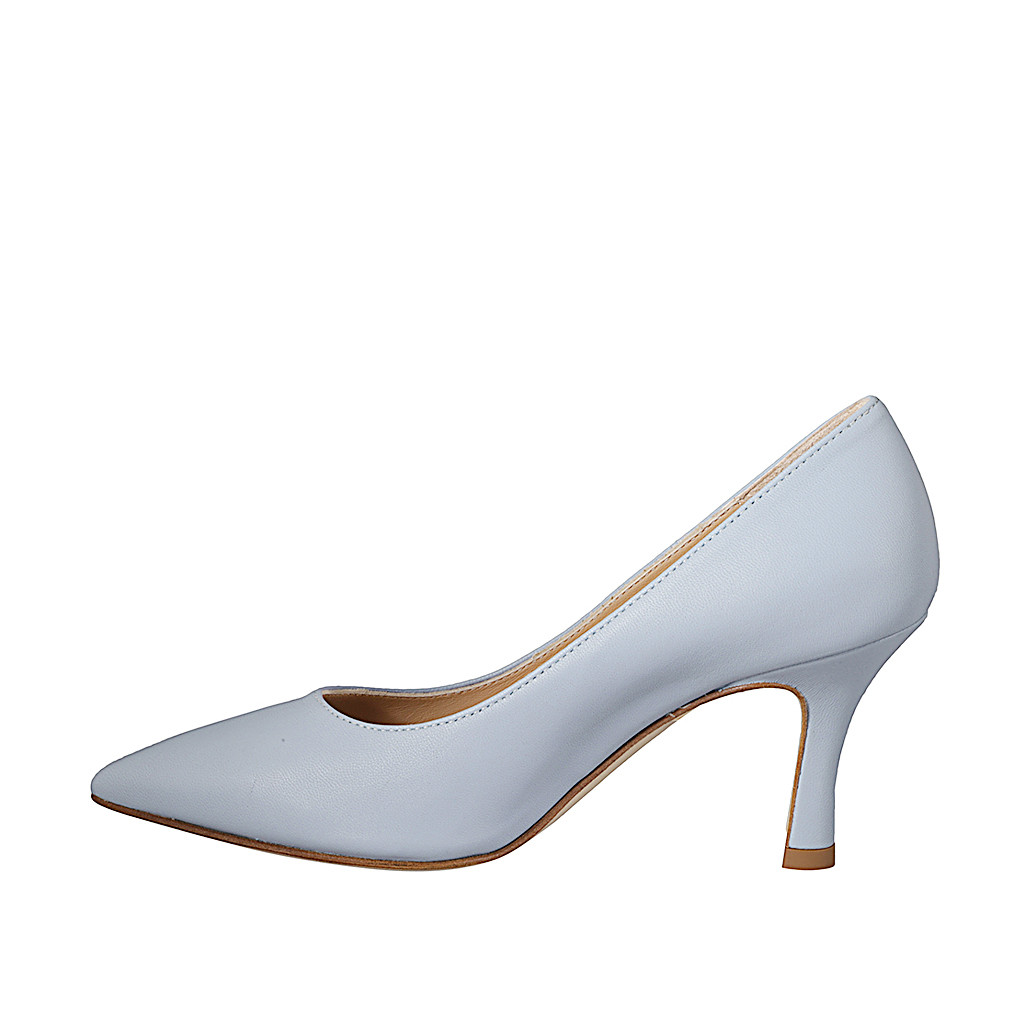 Damenpumps mit Spitze, mit Insohle aus Memory-Schaum aus hellblauem Leder und mit Absatz 7