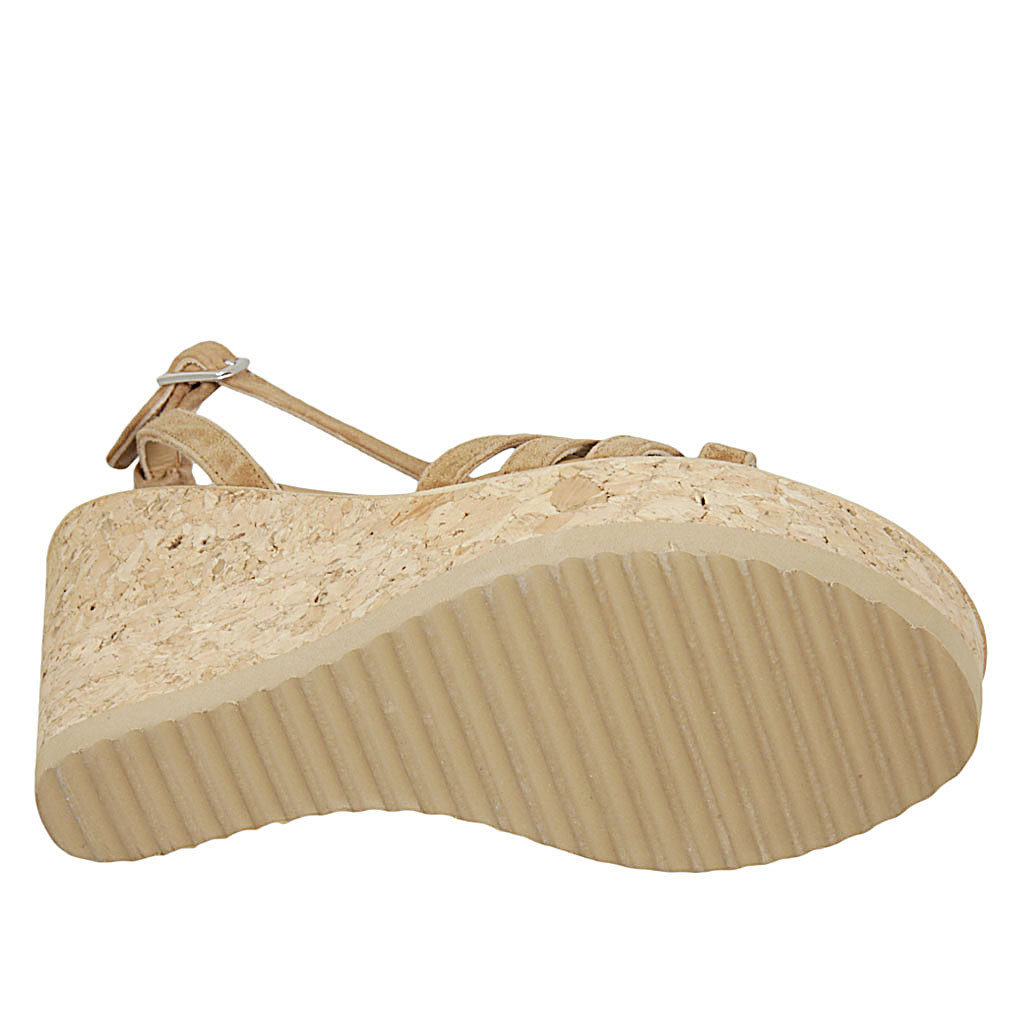 Damenderbyschuh mit Schnürsenkeln aus beigem Wildleder Absatz 3