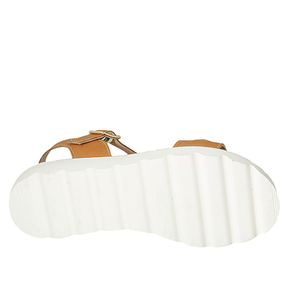 Damensandale aus cognacbraunem Leder mit Riem und Accessoire Keilabsatz 3