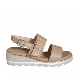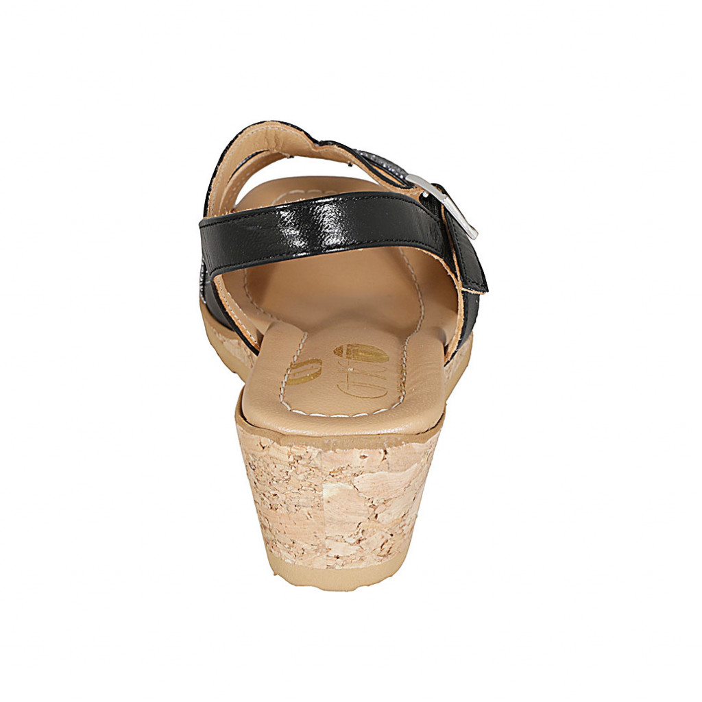 Damenriemchensandale aus blauem Lackleder mit Plateau und Keilabsatz 7