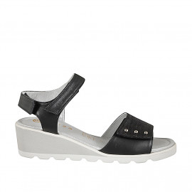 Damensandale aus beigem Leder und platinfarbenem gedrucktem Wildleder Keilabsatz 5