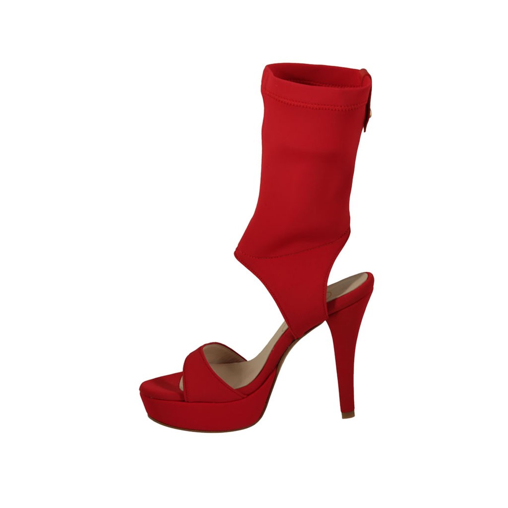 Damenderbyschuh mit Schnürsenkeln aus rotem bedrucktem Leder Absatz 3