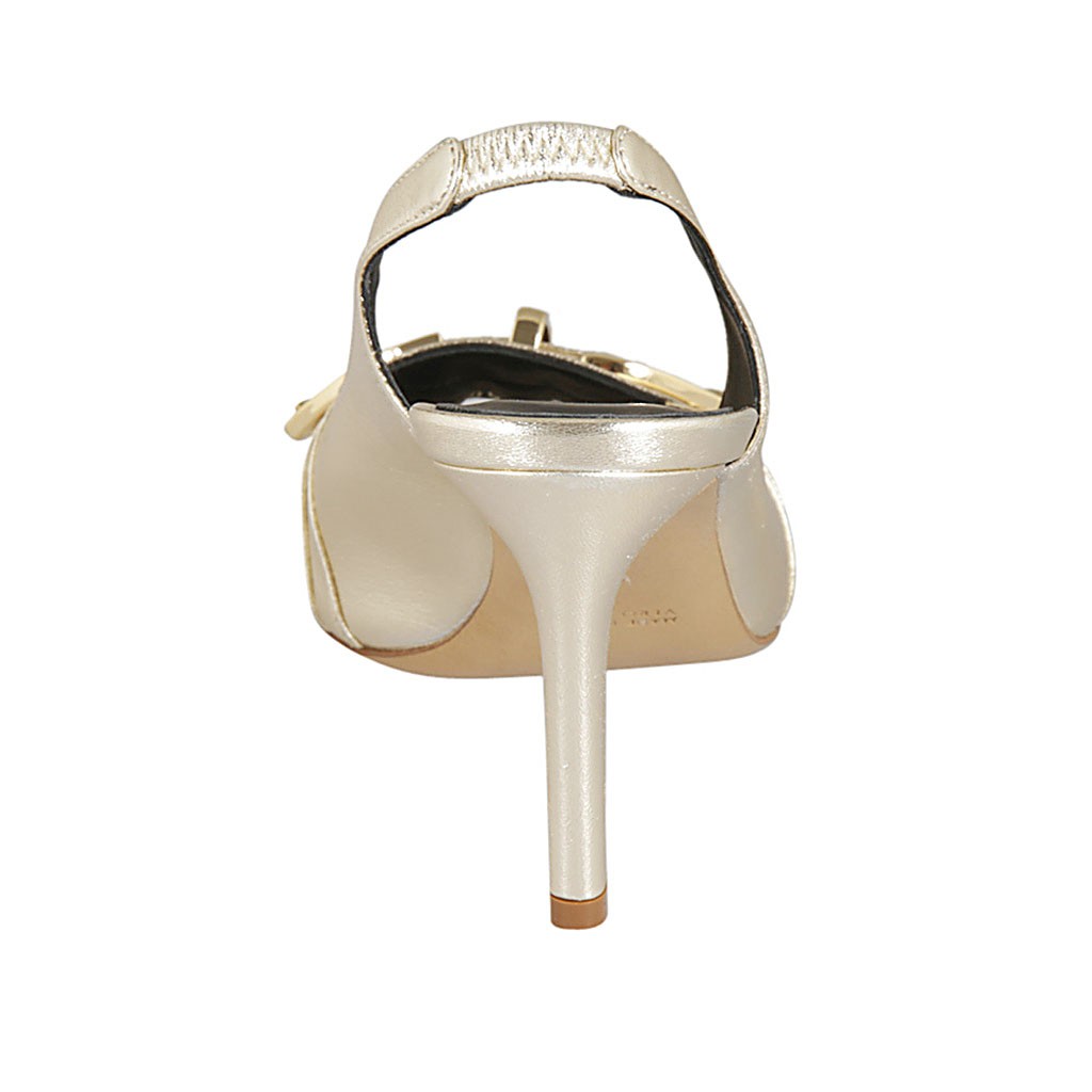 Spitzer Damenpump aus schwarzem Leder und Stoff Absatz 8