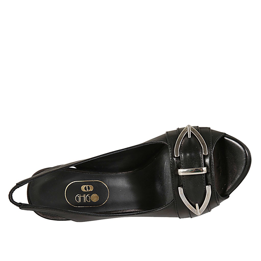 Damensandale mit Gummiband und Schnalle aus schwarzem Leder Absatz 8 - Verfügbare Größen:  31, 32, 33, 34, 42, 43, 46, 47