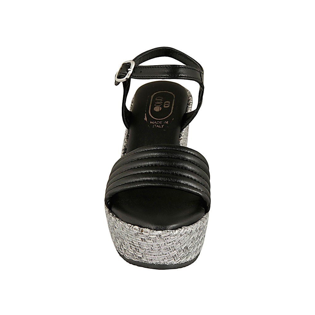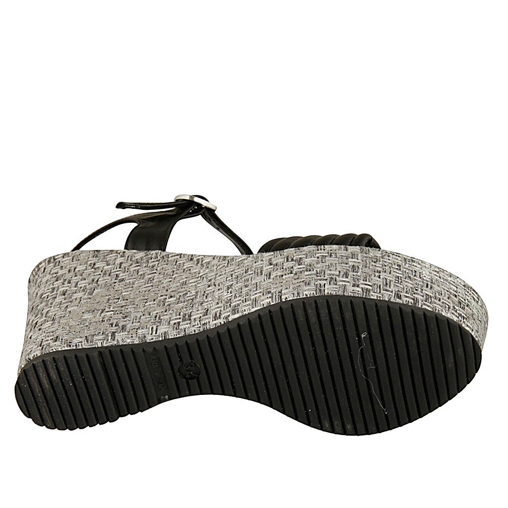 Damenriemsandale mit Plateau aus schwarzem Leder und grauem Stoff Keilabsatz 9 - Verfügbare Größen:  34, 42, 43, 44, 45