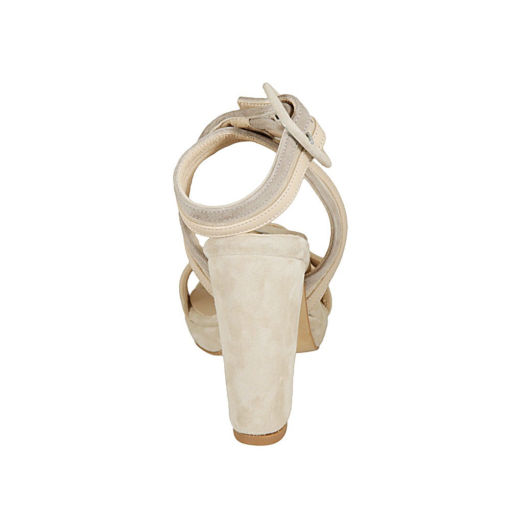 Damensandale aus beigem und taupefarbenem Wildleder und nudefarbenem Leder mit Schnallen und Plateau Absatz 10 - Verfügbare Größen:  32, 33, 34, 42, 43, 45