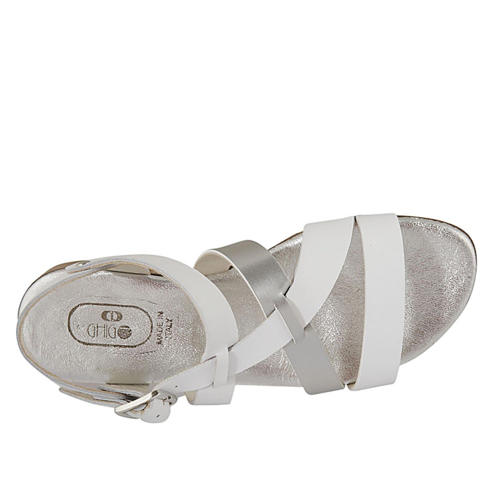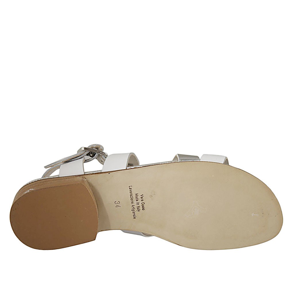 Damensandale aus weissem und metallischem silberfarbenem Leder Absatz 2 - Verfügbare Größen:  32, 33, 42, 43, 44, 46