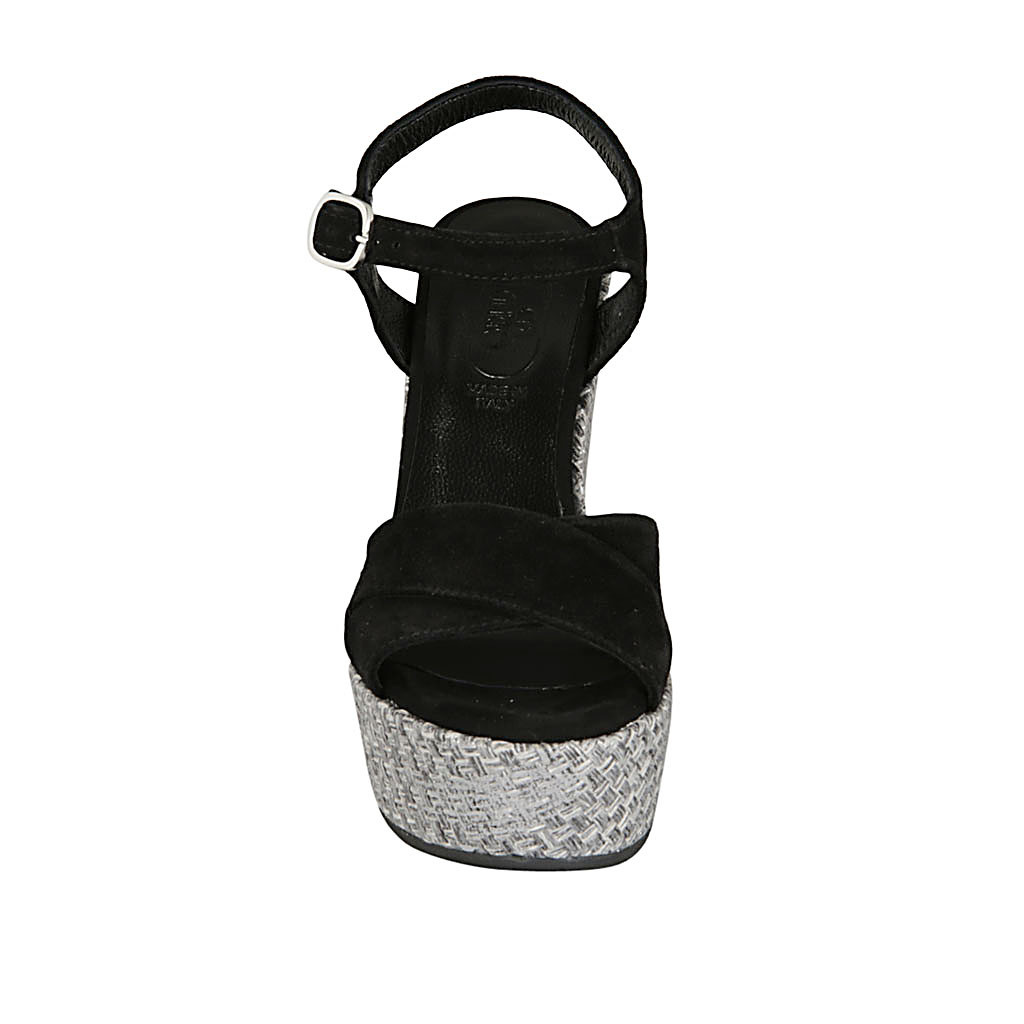Damenpantoletten aus schwarzem Leder Keilabsatz 10