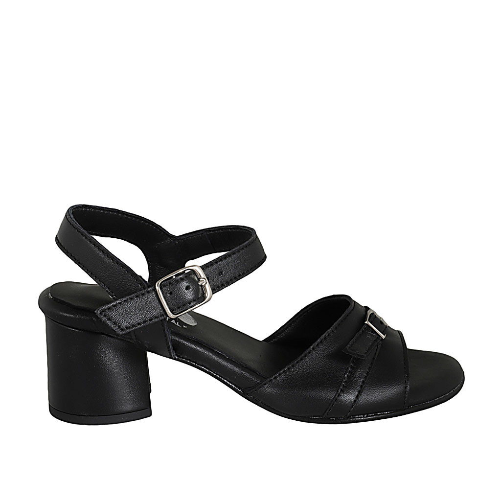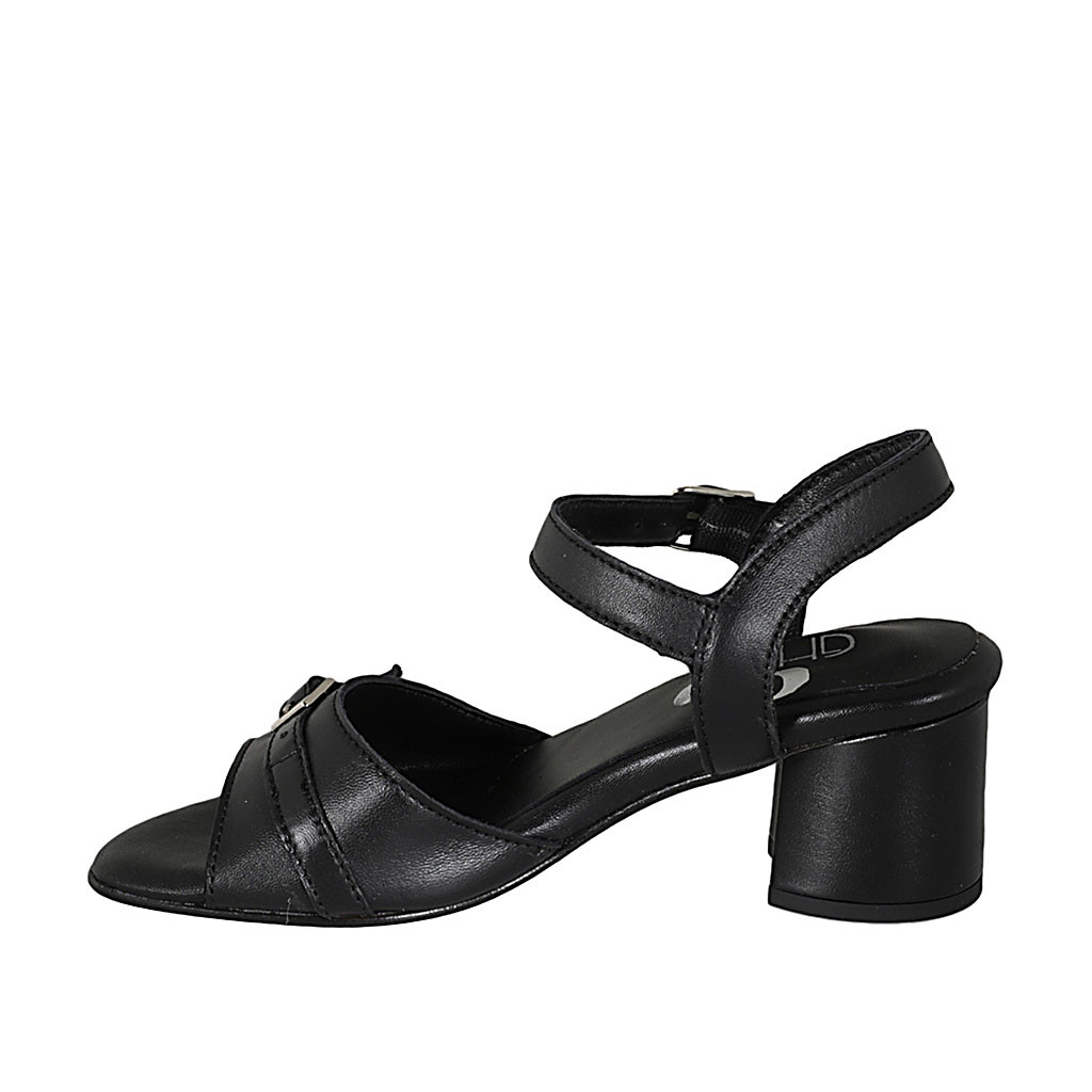 Damensandale mit Riem und Schnalle aus schwarzem Leder Absatz 5