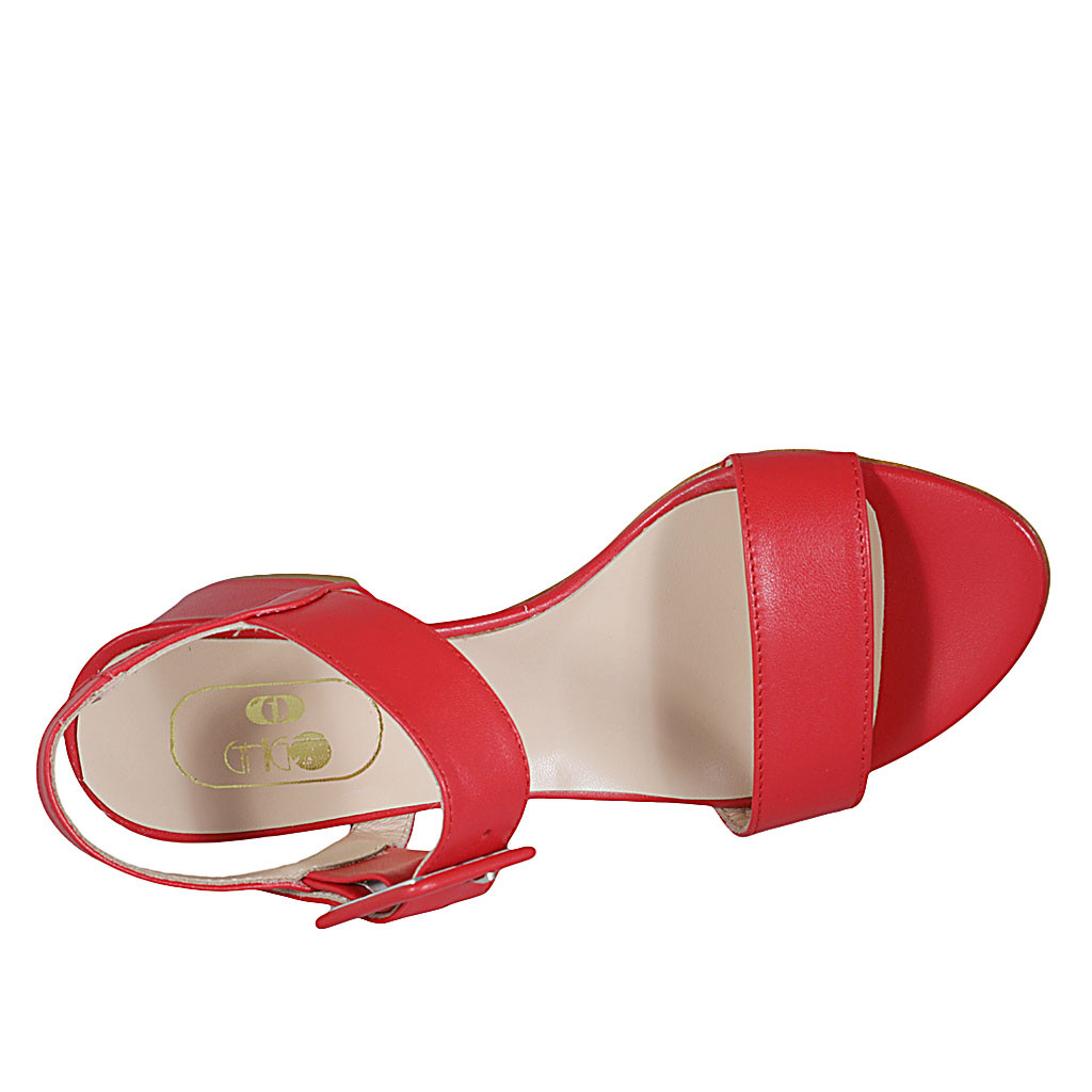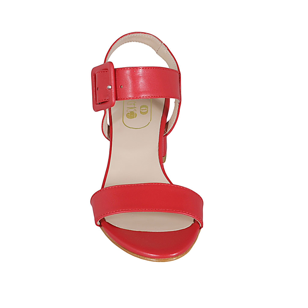 Damensandale mit Schnalle aus rotem Leder Absatz 5