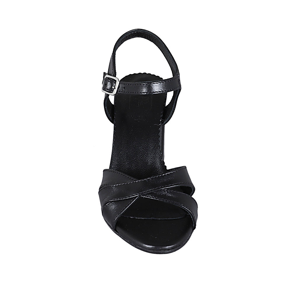 Damensandale mit Riem aus schwarzem Leder Absatz 7